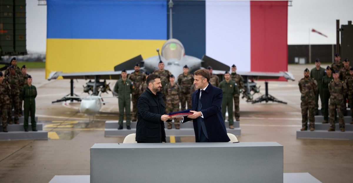 Macron ve Zelenskiy, Hava Üssü’nde Ukrayna’nın gelecek yıllarda Fransız savunma ekipmanları satın almasına ilişkin niyet mektubuna imza attı.