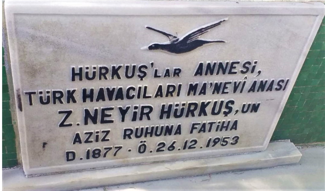 Zeliha Neyir Hürkuş’un kabrine verilen bir ad da “kuşlu mezar”dır. Havada uçak sesi duyanlar bilirler ki, “kuşlu mezar”ın sahibi tayyareci geldi, annesini ziyaret ediyor.