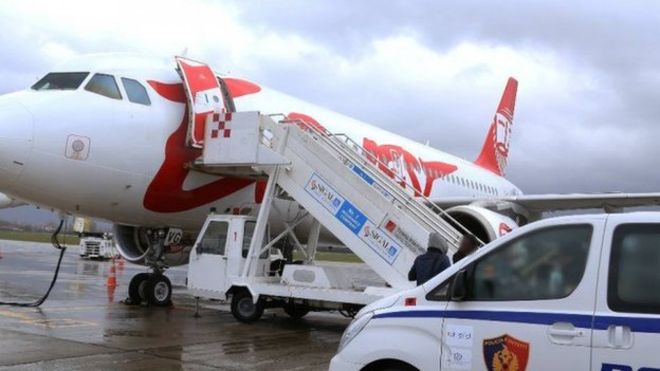 Arnavutluk polisi, kamuflaj giysili üç soyguncu, uçağa çuvallar içinde para yükleyen personeli silah tehdidiyle yere yatırdıktan sonra kargo bölümündeki paraları alarak kaçtığını bildirdi.