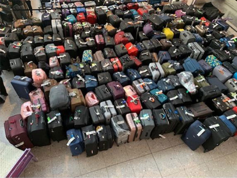Yolcuların bagajlarını teslim etmek için geldiği check-in bankolarında kayıt sisteminin bozulduğu ve işlemlerin yapılamayacağı bildirildi. Yüzlerce valiz terminalin ortasında kalırken, bir çok sefer de gecikmeye uğradı.