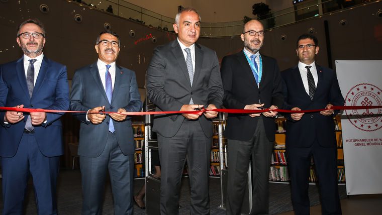 Açılış kurdelesini İstanbul Havalimanı Mülki İdare Amirliği’ne Ahmet Önal ve İGA Havalimanı İşletmesi İcra Kurulu Başkanı ve Genel Müdürü Kadri Samsunlu ile kesen Bakan Ersoy, kütüphaneyi gezdi.