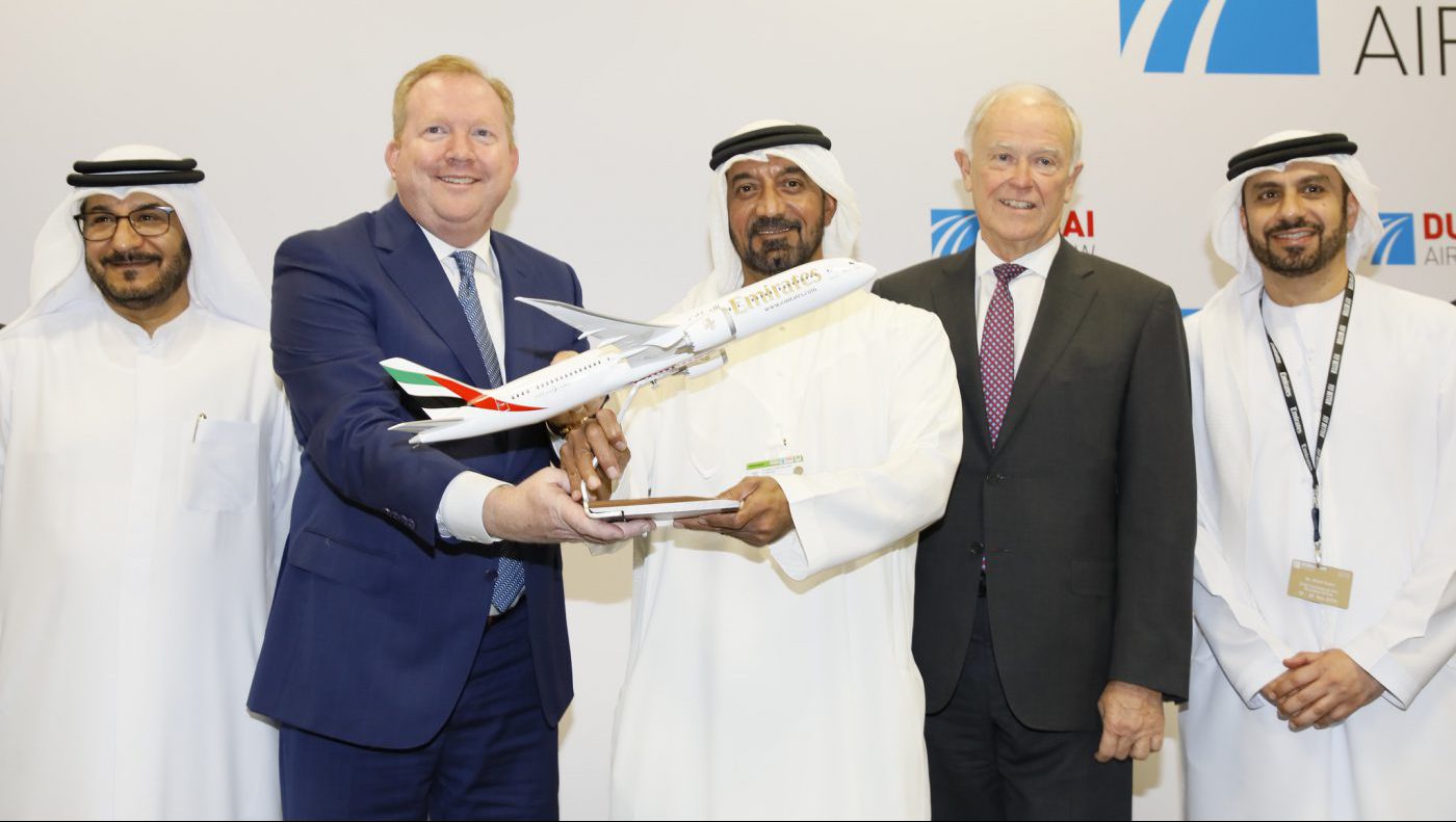 Emirates, Dubai Airshow’da 16 milyar dolarlık 50 A350 ve 8,8 milyar dolarlık 30 787-9 siparişi vermiş oldu. Havayolu böylece fuarda toplam 24,8 milyar dolarlık 80 geniş gövdeli uçak siparişi vermiş oldu.
