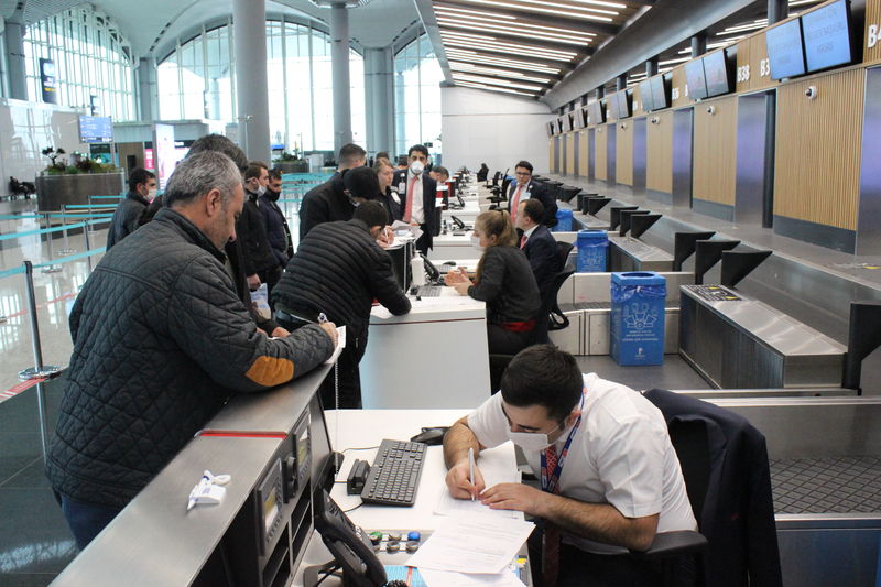 Yeni tip koronavirüs (COVID-19) salgını için alınan tedbirler kapsamında hava yolu ile yurt içi uçuşlarda “Seyahat İzin Belgesi” isteneceğinin açıklanmasının ardından bugün İstanbul Havalimanı’nda başvuruda bulunan yolcular nedeniyle hareketlilik yaşandı.