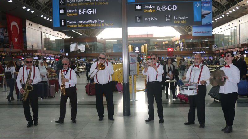 Ayrıca gidiş terminalinde 3 saatlik bando dinletisi yapıldı. Dinletiye yolcular ve havalimanı çalışanları Türk bayraklarıyla eşlik etti.