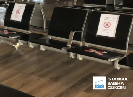 Kovid-19 salgınıyla mücadelede Sabiha Gökçen Havalimanı sosyal mesafenin korunması için terminal içinde yolcuların yan yana oturulmasına karşı önlem aldı.