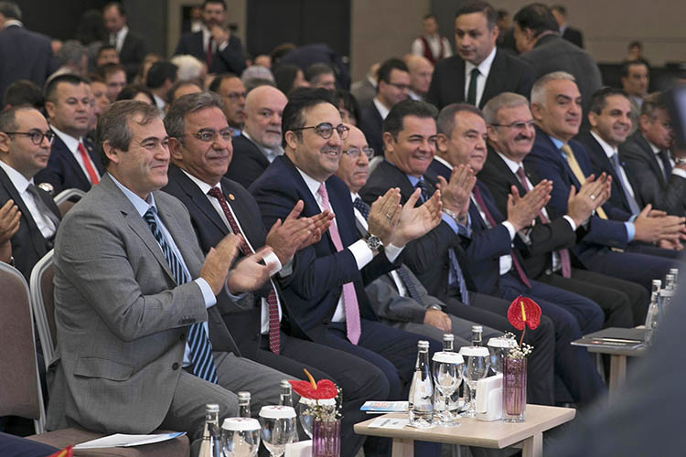 İlker Aycı; “Öncelikle güzel Antalya’mızın bu yıl tarihinde ilk kez 15 milyonu aşkın turisti ağırlamış olmasını son derece önemli buluyor, bu başarıda büyük pay sahibi olduğuna inandığım AKTOB’u huzurlarınızda tebrik ediyorum. İnanıyorum ki, büyük başarılarla tamamladığımız bir turizm sezonunun ardından 2020 yılında daha büyük başarılara hep birlikte tanıklık edecek, ülkemizin dünya turizmindeki yükselişi ile hep birlikte gururlanacağız. Ülkemiz 2016 yılında yaşadığı zorlu süreçleri hızla geride bırakmayı başarmış ve 2018 yılında 39,5 milyon turist sayısına ulaşarak dünya turist sayısı sıralamasında 6. sıraya yeniden yerleşmiştir. 2019 yılının ilk 9 ayı turizm sektörünün bu yıl önemli bir sıçrama gerçekleştirdiğini ve ülkemize gelen yabancı ziyaretçi sayısının ilk 9 ayda yüzde 14,5 artarak 36,4 milyona ulaştığını gösteriyor. Türk Hava Yolları ailesi olarak bizler de ülkemizin Milli Bayrak Taşıyıcısı ve dünyada en çok ülkeye uçan havayolu unvanımızla, misafir kabul ettiğimiz yolcularımızı sevdiklerine ulaştırırken, ülkemizi, insanımızı ve değerlerimizi uçtuğumuz her ülkede tanıtıyor, tarihi ve doğal zenginliklerimizi gözler önüne seriyoruz. Markamızın, 2003 yılında 10 milyonun biraz üzerinde olan yolcu sayısını 2018 yılı sonu itibarıyla 75,2 milyon yolcuya çıkardık. Yine 2003 yılında uçtuğumuz şehir sayısı 104 iken bugün Türk Hava Yolları tüm dünyada toplam 126 ülkede 316 şehre sefer icra ediyor. Markamız, dünya çapında arz edilen koltukta 2005 yılında yüzde 0,6’lık paya sahipken, 2018 yılında bu payı 3 katına çıkararak yüzde 1,8 oranında pay sahibi oldu. Global pazarda arz edilen koltuk kapasitesinde, 2018 yılında 15. olan Türk Hava Yolları’nın 2023 yılında 10. sırada olmasını hedefliyoruz” dedi.