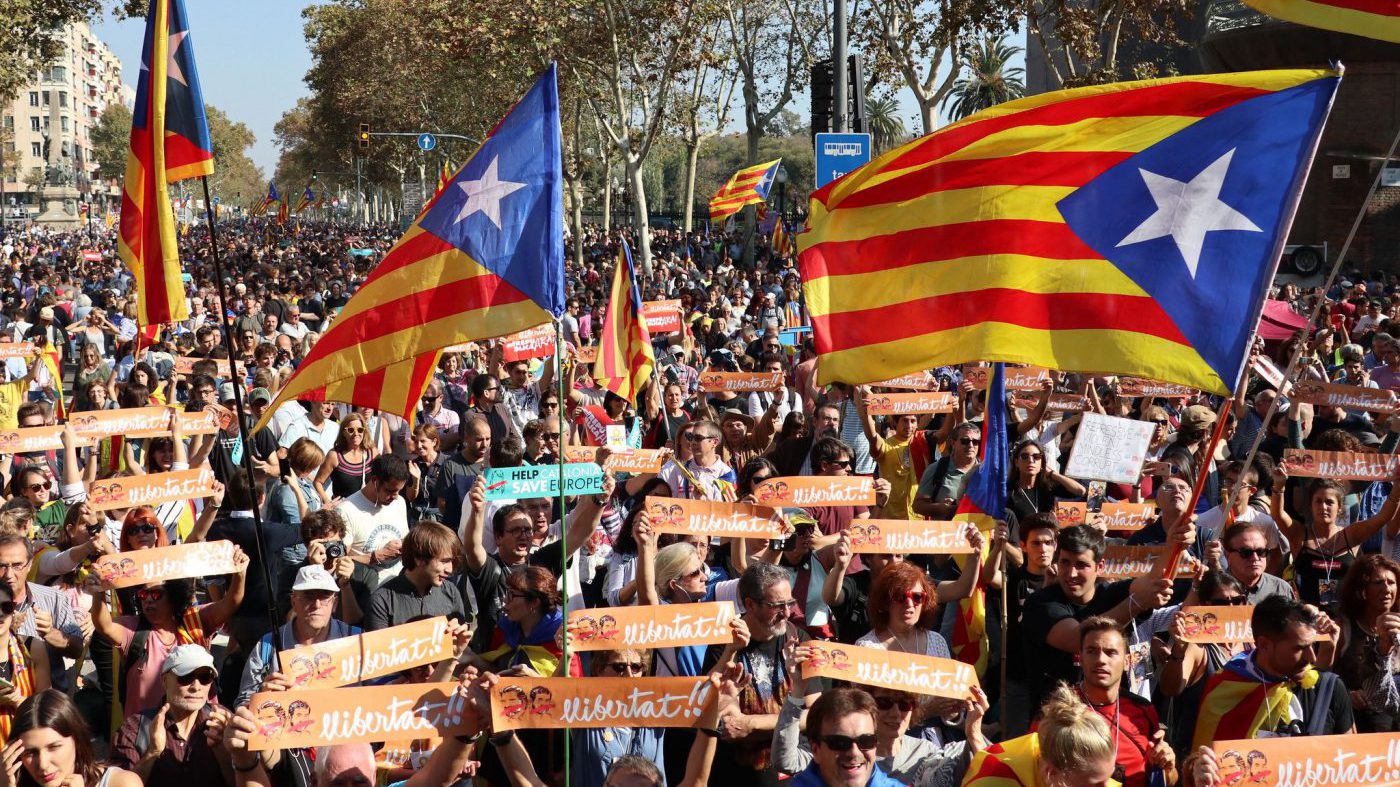 Hafta boyunca Katalonya şehirlerinde “özgürlük yürüyüşleri” adı altında gösteri düzenleyen gruplar, Barcelona’da bir araya geldi.