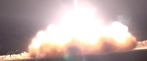 İran devlet televizyonunun sosyal medya hesabından paylaşılan görüntülerde, hava savunma füze bataryasından fırlatılan roketin gökyüzündeki bir hedefi vurduğu görülüyor.