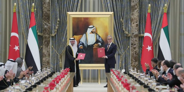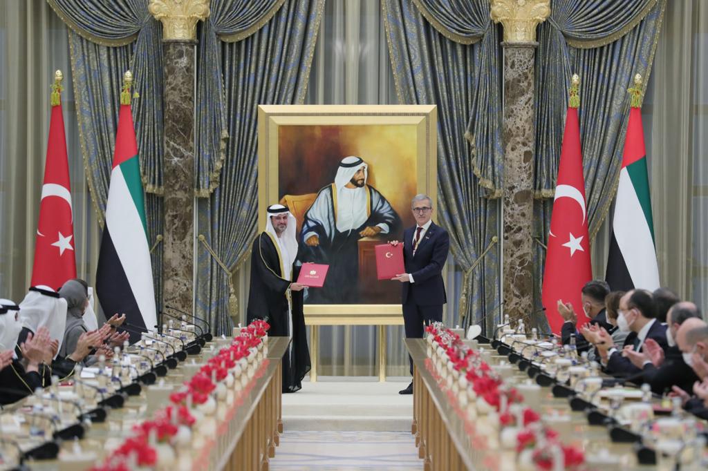 Cumhurbaşkanı Recep Tayyip Erdoğan ile Abu Dabi Veliaht Prensi Şeyh Muhammed Bin Zayid Al Nahyan başkanlığındaki heyetler arası görüşmesinin ardından ikili anlaşmalar imza altına alındı.