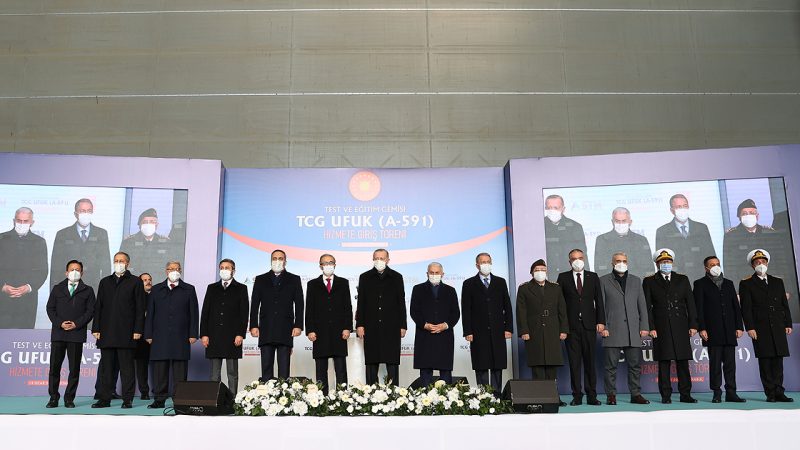 Cumhurbaşkanı Recep Tayyip Erdoğan, İstanbul Denizcilik Tersanesi’nde, Test ve Eğitim Gemisi TCG Ufuk’un Hizmete Giriş Töreni’ndeki konuşmasında, ülke için bir ilki teşkil eden geminin hizmete alındığı bir günde katılımcılarla birlikte olmaktan duyduğu memnuniyeti dile getirdi.