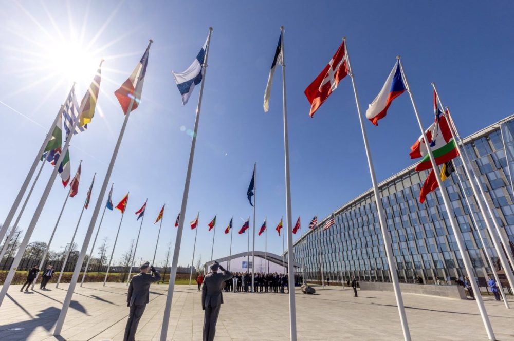 Finlandiya’nın katılımı dolayısıyla NATO Dışişleri Bakanları Toplantısının yapıldığı NATO karargahında tören düzenlendi.