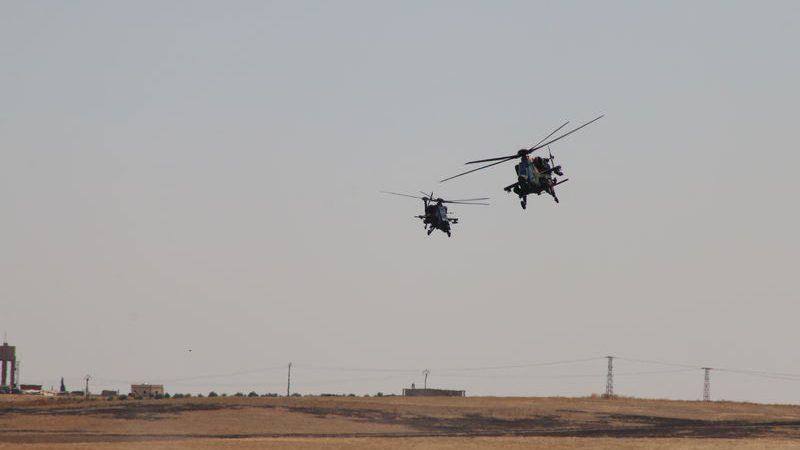 Türk Silahlı Kuvvetleri’ne ait 2 helikopter ile ABD unsurlarına ait 2 helikopter ilçeden havalandı. Helikopterler, sınırın Suriye tarafına doğru hareket etti.