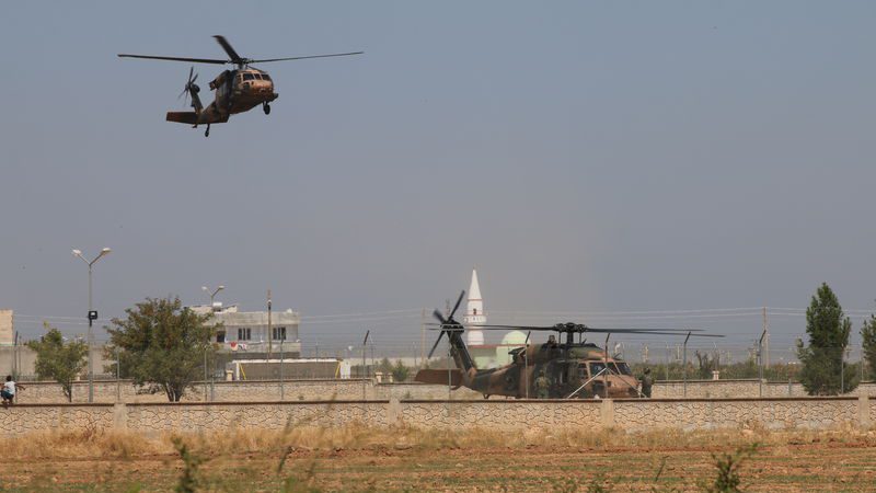 Türk Silahlı Kuvvetlerine ait 2 helikopter ilçedeki havalandığı bölgeye geri dönerken ABD unsurlarına ait 2 helikopter ise Suriye tarafında kaldı.