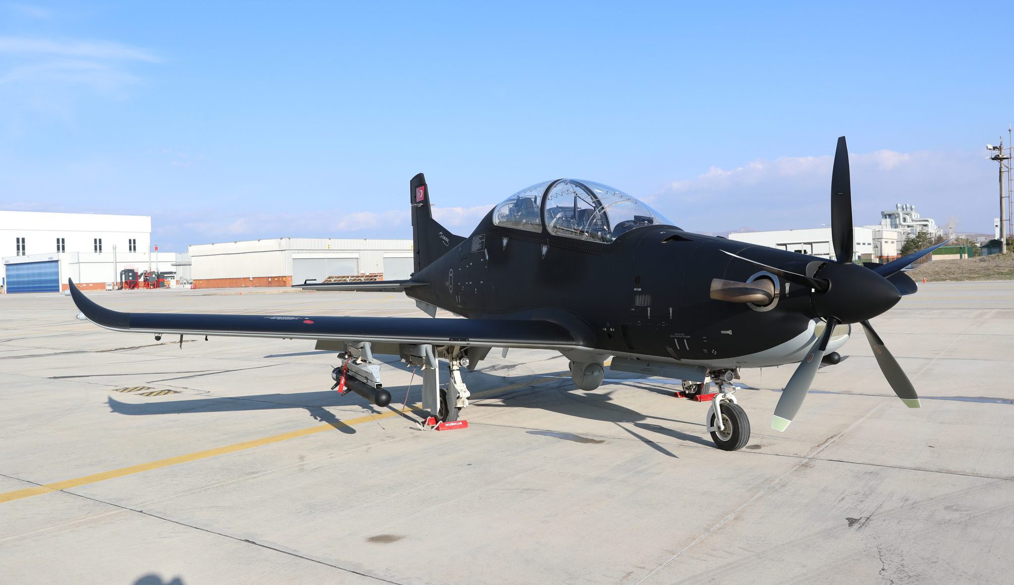 Öncelikli olarak Jandarma Genel Komutanlığı’na operasyon bölgesinde yakın hava desteği sağlayacak olan HÜRKUŞ-C, Jandarma pilotlarının talepleriyle siyah renge boyandı.