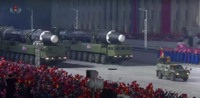 Kuzey Kore’de, Donald Trump ve Kim Jong-un’un 2018’deki ilk zirvelerinden bu yana, resmi geçit törenlerinde hiç balistik füze kullanmıyordu.