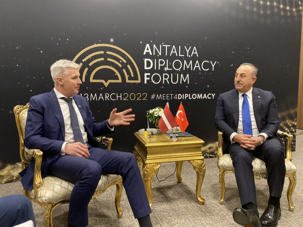 12 Mart'ta Antalya Diplomasi Forumu'na katılan Letonya Başbakan Yardımcısı ve Savunma Bakanı Artis Pabriks ve Dışişleri Bakanı Mevlüt Çavuşoğlu Fotoğraf: Twitter / @Pabriks