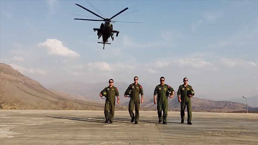 Milli Savunma Bakanlığının (MSB)sosyal medya hesabından paylaşılan görüntülerde, “Taarruz Helikopter Filosu olarak Kahraman Mehmetçiğimize en ufak zarar gelmesin diye her şartta, her koşulda, zor zamanlarda, mermilerin arasında pençelerimiz her zaman hainlerin üzerindedir. Her dağın zirvesi Mehmetçik.” mesajına yer verildi.