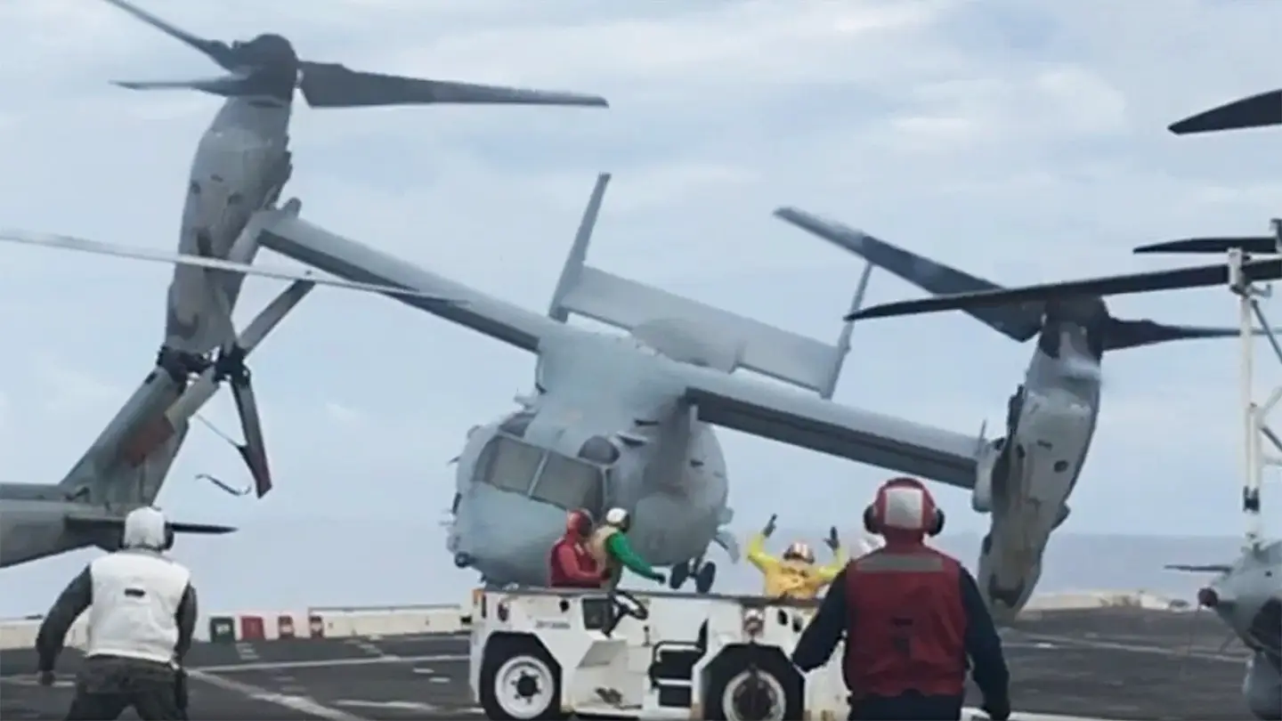 Avustralya’nın Queensland eyaleti açıklarında 5 Ağustos 2017’de ABD Donanması’na ait USS Green Bay adlı amfibik çıkarma gemisine iniş yaptığı sırada düşen Tiltrotor MV-22 Osprey’in kaza anına ait görüntüler ortaya çıktı.