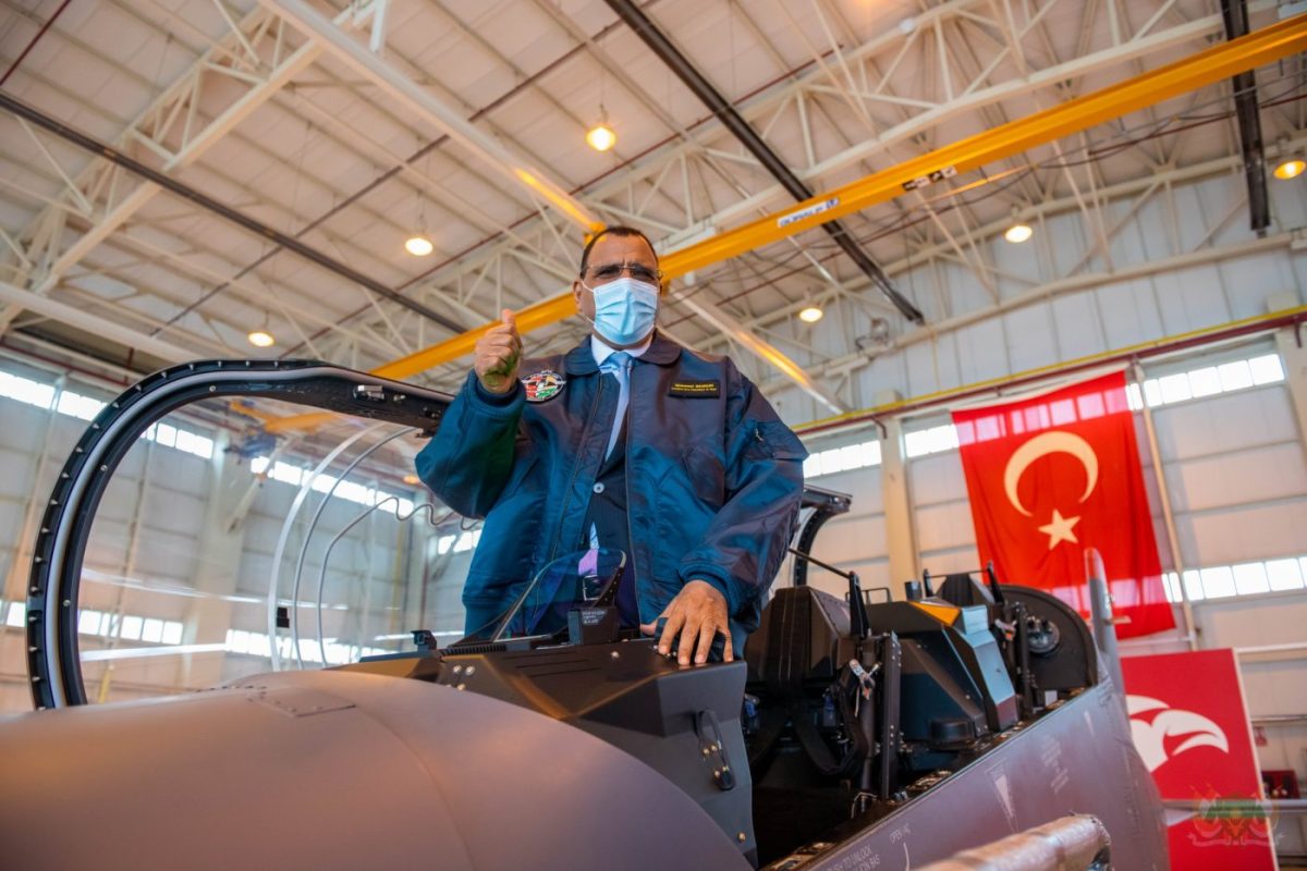 Nijer Cumhurbaşkanı Mohamed Bazoum, ülkesinin satın alma sözleşmesi imzaladığı yerli yapım HÜRKUŞ'un içinde. Fotoğraf: Twitter / @PresidenceNiger