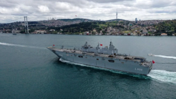 Dünyanın ilk SİHA gemisi TCG Anadolu, 23 Nisan Ulusal Egemenlik ve Çocuk Bayramı’nda İstanbul Boğazı’ndan geçti. Boğaz geçişi sırasında Cumhurbaşkanı Recep Tayyip Erdoğan’ı da selamlayan gemiden 21 pare top atışı yapıldı.