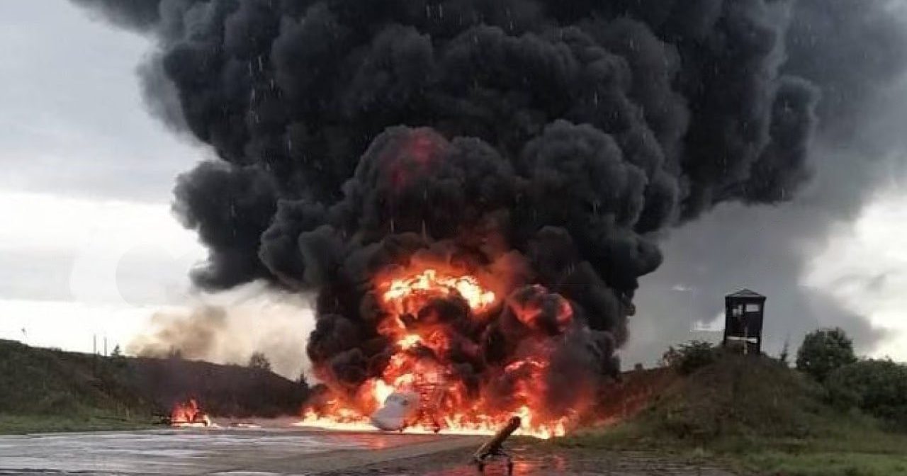 Sosyal medyada yayınlanan görüntüler, St Petersburg’un güneyindeki Soltsy-2 Hava Üssü’nde bir Tupolev Tu-22’yi yanarken gösteriyor.