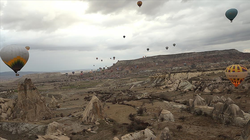 Konuklarına masalsı bir görünüm sunan Kapadokya’daki tarihi, kültürel ve doğal güzellikleri ziyaret eden turistlerin bu alanları kuş bakışı izlemesine imkân sunan balon turlarının, hava tahminlerine göre önümüzdeki günlerde yeniden başlaması bekleniyor.
