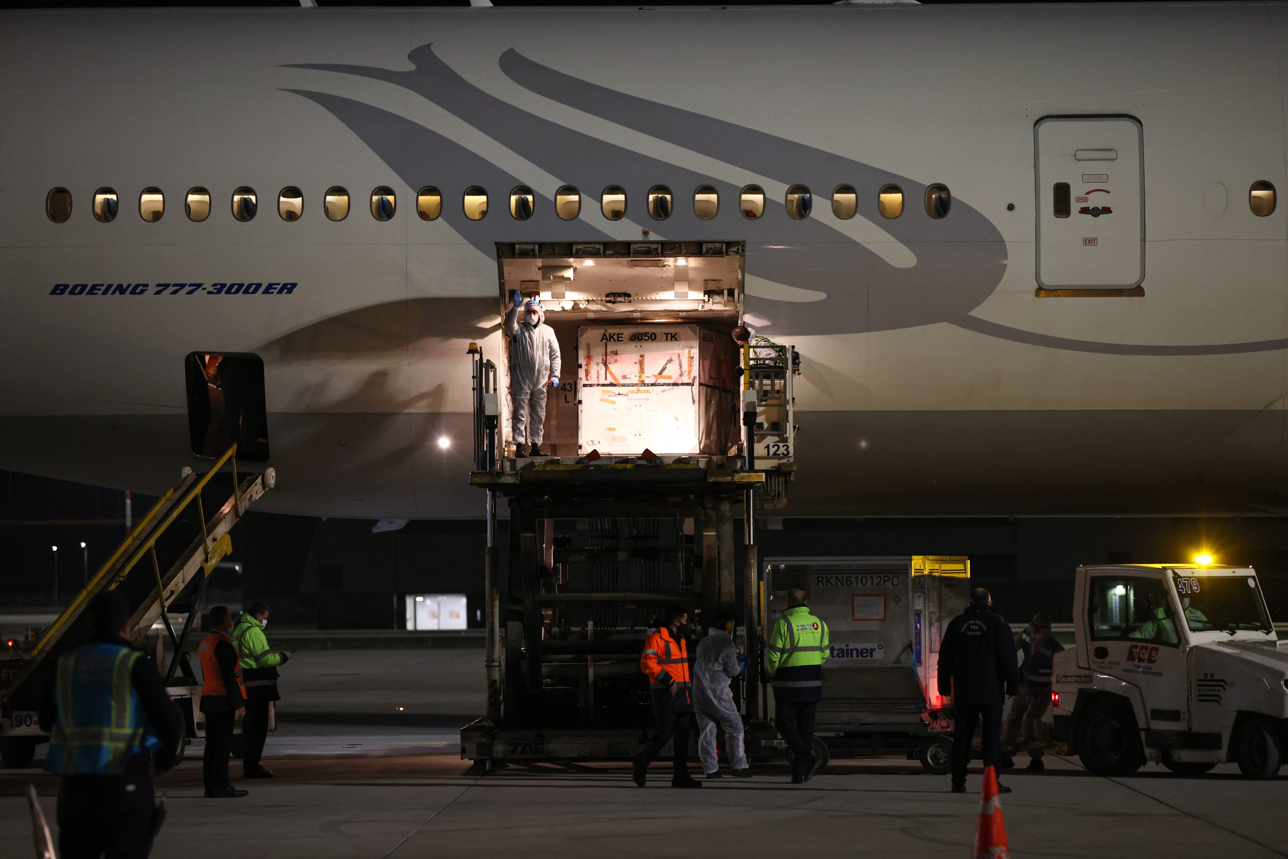 Çin’in başkenti Pekin’deki havalimanından kalkan Türk Hava Yolları’na ait “TK 6175” sefer sayılı “Boeing 777” tipi uçağın saat 06.10’da İstanbul’a inişiyle aşıların bulunduğu konteynerler, gümrük işlemlerinin yapılmasının ardından uçaktan alınarak depolara taşınmaya başlandı.