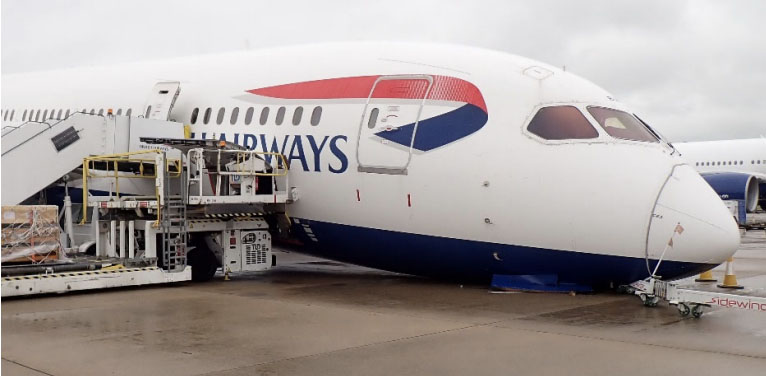 18 Haziran’da British Airways ait Boeing 787-8 (G-ZBJB), Frankfurt’a bir kargo uçuşuna hazırlanırken Heathrow’da ön dikmesi çöktü. İngiltere’nin Hava Kazaları Soruşturma Kolu (AAIB), olaya insan hatasının neden olduğunu belirten bir bülten yayımladı.