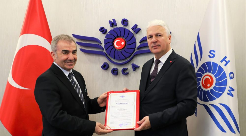SHGM Genel Müdürü Prof. Dr. Kemal Yüksek, Air Anka Genel Müdürü Erol Canpolat’a yolcu taşımacılığı için işletme ruhsatını teslim etti.