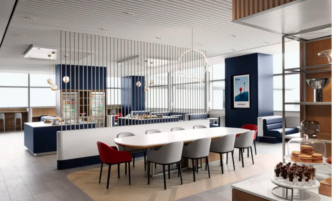 Air France tarafından SGK Brandimage ile işbirliği ile tasarlanan salonda Fransız tasarımcıların dokunuşları ön plana çıkıyor.