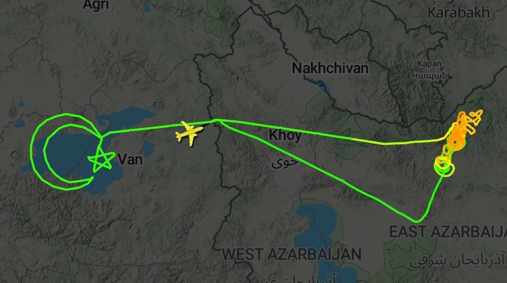 FlightRadar24 uygulamasında, Akıncı İHA’nın İran’daki görevini başarıyla tamamlayıp yurda dönmesinin ardından, Van’daki üssüne inişi öncesinde gökyüzünde ay yıldız rotası çizdiği görüldü.