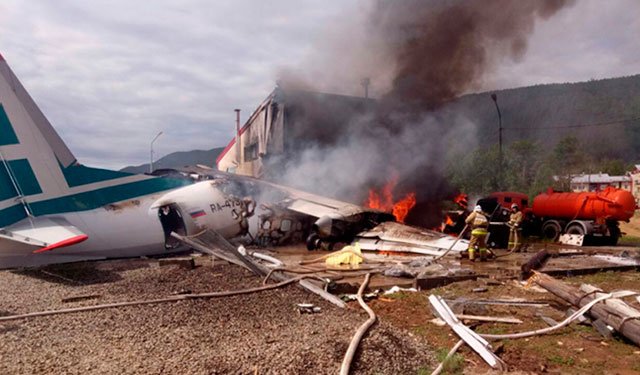 Rusya’ya bağlı Buryatya Cumhuriyeti’nin Nizheangarsk Havalimanı’nda Angara Hava Yolları’na ait olan An-24 yolcu uçağı acil iniş sırasında kaza yaptı.