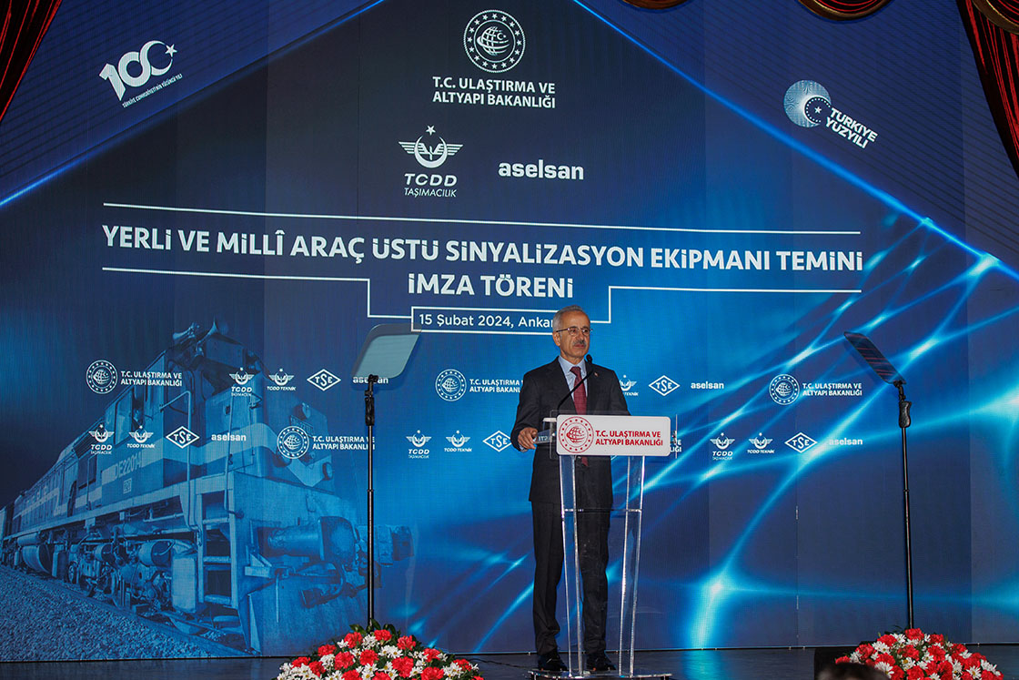 “Böylece hem maliyetleri düşüreceğiz hem de sistemi bilen teknik personelin yetiştirilmesini sağlamış olacağız. Sinyalizasyon ekipmanı olmayan 99 dizel-elektrikli ana hat lokomotifimiz için araç üstü sinyalizasyon ekipmanının geliştirilmesi, imali ve montajı amacıyla ASELSAN ile TCDD Taşımacılık AŞ arasında Araç Üstü Sinyalizasyon Sistemi Temini Projesi ile ilgili olarak 1 milyar 690 milyon lira tutarında sözleşme imzaladık. ASELSAN, Gayrettepe-İstanbul Havalimanı metro hattımızda kullanılan yerli metro sinyalizasyon sisteminden sonra lokomotif ve trenlerimiz için de yerli bir sinyalizasyon sistemi geliştirecek. Avrupa standartlarına göre sertifikalandırılacak sistem ile yük ve yolcu taşımacılığında daha güvenli bir trafik yönetim sistemi kurulmuş olacak.”