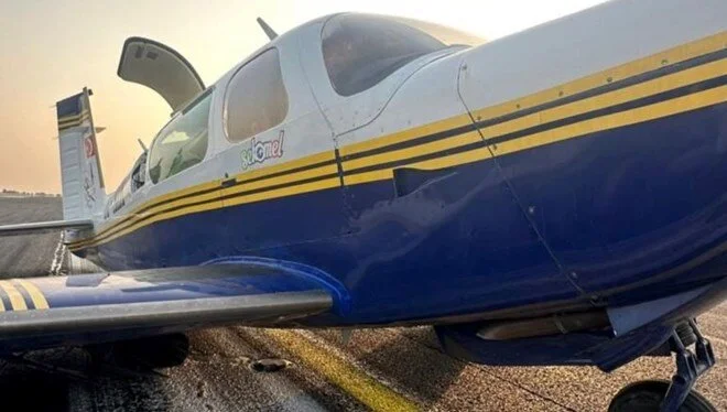 Kuyruk tescilli olan Mooney M20J tipi TC-AZK uçağı, iniş sırasında yaşanan uçuş takımı problemleri nedeniyle gövde üstüne iniş yapmak zorunda kaldı. 40