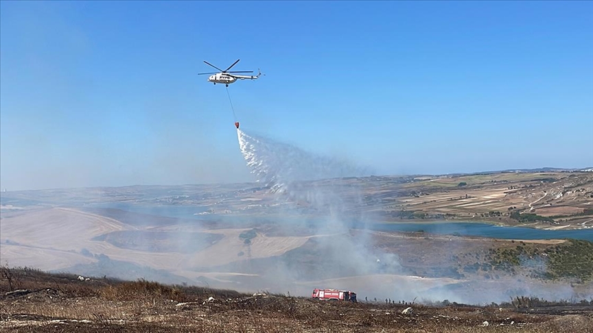 Rüzgarın etkisiyle büyüyen yangına havadan müdahale için helikopter desteği de istendi.