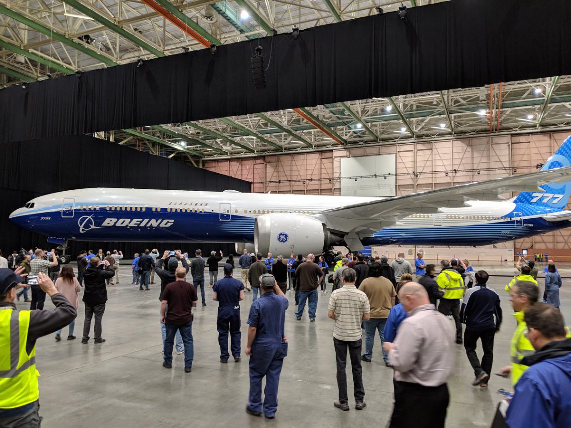 Boeing’in en yeni uçağı 777-9, sadece çalışanların katıldığı “törensiz” olarak roll out yaptı. 777-9, Boeing’in geniş gövdeli uçaklarını imal ettiği Seattle’daki Everett Tesisleri’nde sadece çalışanların katıldığı mini seremoni ile fabrikadan çıkartıldı.