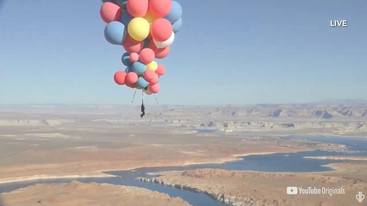 Amerikalı sihirbaz ve sahne sanatçısı David Blaine Arizona’da 52 helyum balonu ile çok özel bir uçuşa imza attı.