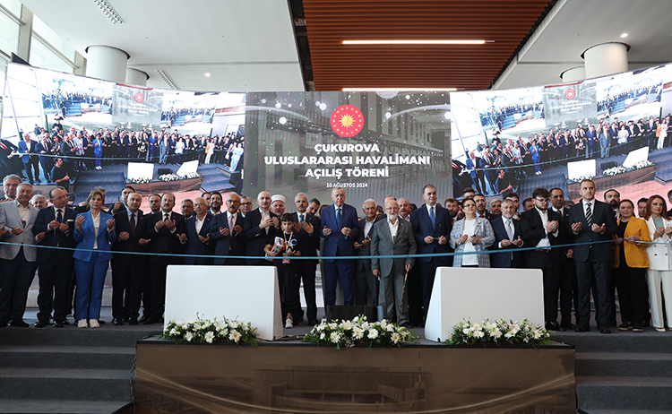 Havalimanının Adana ve Mersin ile tüm bölgeye, tüm Türkiye’ye ve 85 milyonun her bir ferdine hayırlı olması temennisinde bulunan Erdoğan, eserin bölgeye kazandırılmasında emeği geçen herkese teşekkür etti.