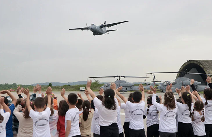 Seahawk ve Süper Kobra helikopterleri ile deniz karakol uçakları, çocuklar için gösteri uçuşu gerçekleştirdi.