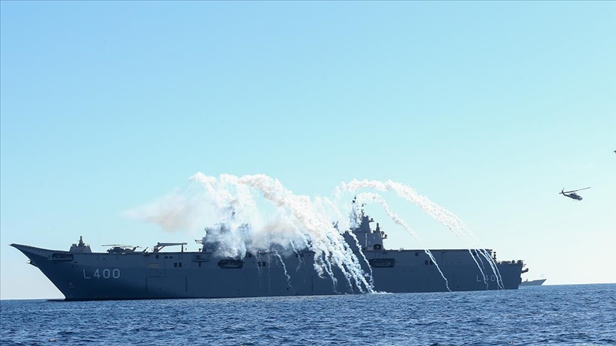 Deniz Kuvvetleri Komutanı Oramiral Ercüment Tatlıoğlu, katılımcı ve gözlemci ülke temsilcileri ile gazeteciler, Türk Silahlı Kuvvetlerinin en büyük savaş gemisi, yerli ve milli üretim TCG Anadolu gemisinden harekatı izledi.