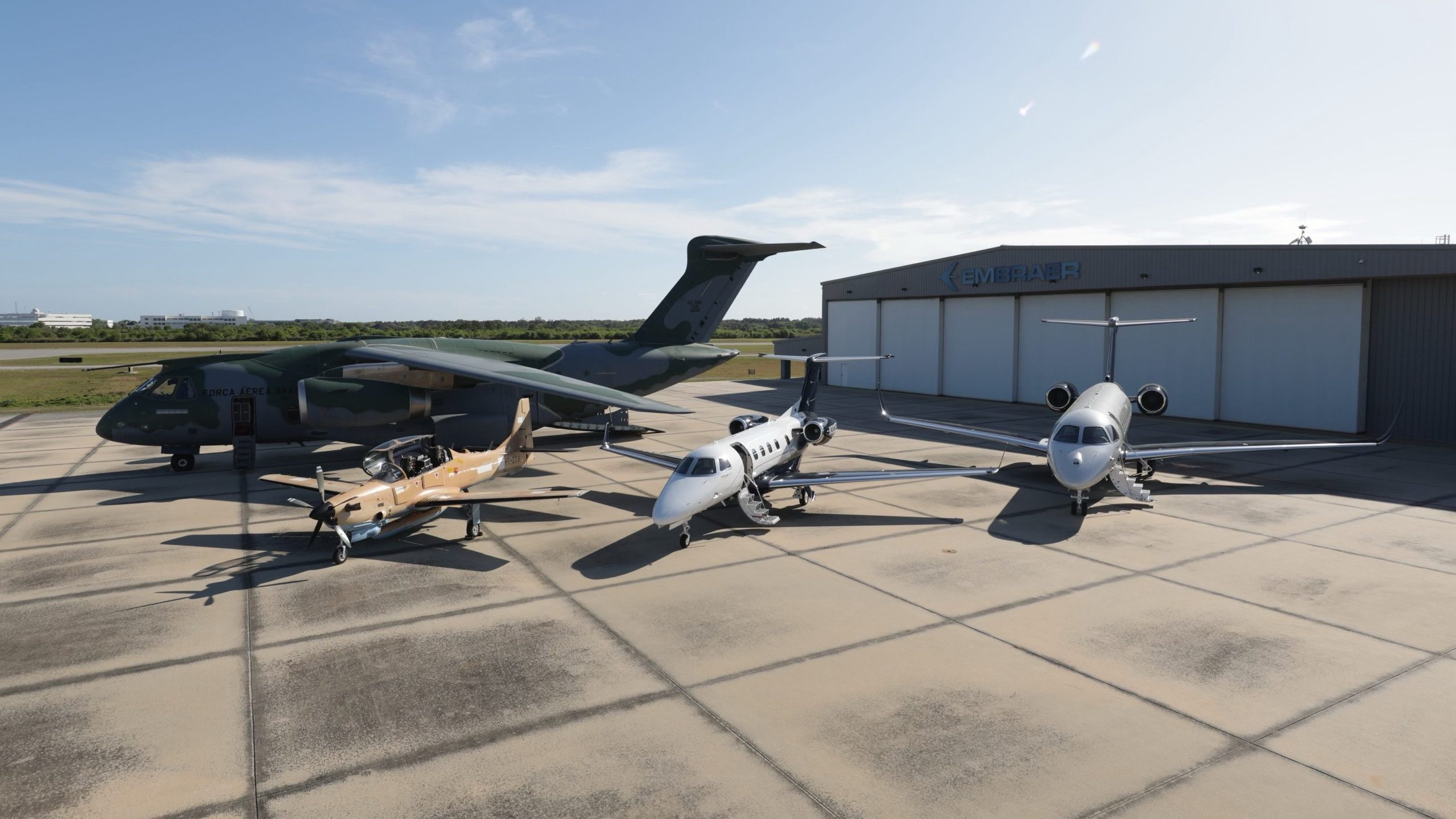 Embraer, Florida’ya yapılan açılış ziyaretinde C-390 Millennium ve A-29 Super Tucano’yu sergiledi. İki uçak, Praetor 600 süper orta boy ve Phenom 300E hafif iş jetleriyle birlikte Embraer Executive Jets’in genel merkezinde statik olarak sergilendi.