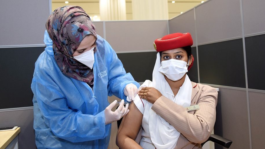 BAE Sağlık Bakanlığı ve Dubai Sağlık Kurumu ile Emirates’in iş birliğiyle başlatılan aşılamaya ilk olarak pilot, kabin memurları, yer hizmetleri çalışanlarından başlandı.