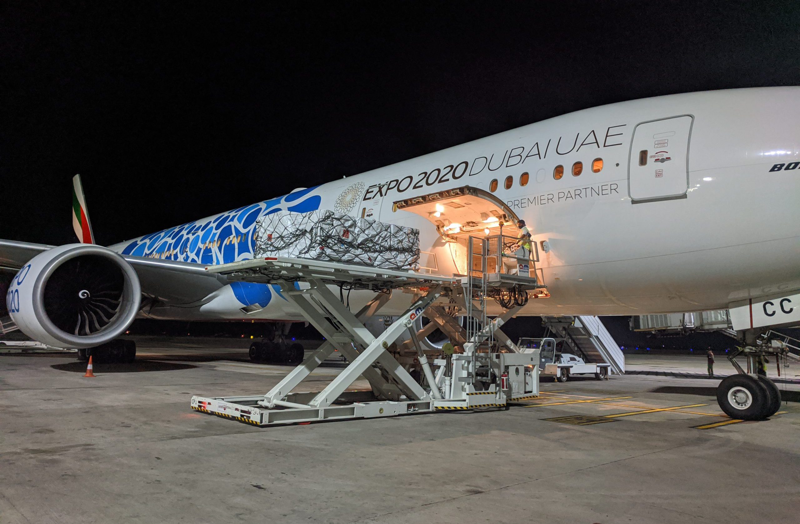 Emirates, Hindistan insani yardım hava köprüsü kapsamında gönderilen ilk paket, Dünya Sağlık Örgütü’nden (DSÖ) gelen 12 tondan fazla çok amaçlı çadırın sevkıyatı oldu ve Dubai’deki IHC’nin koordinesi ile Delhi’ye gönderildi.
