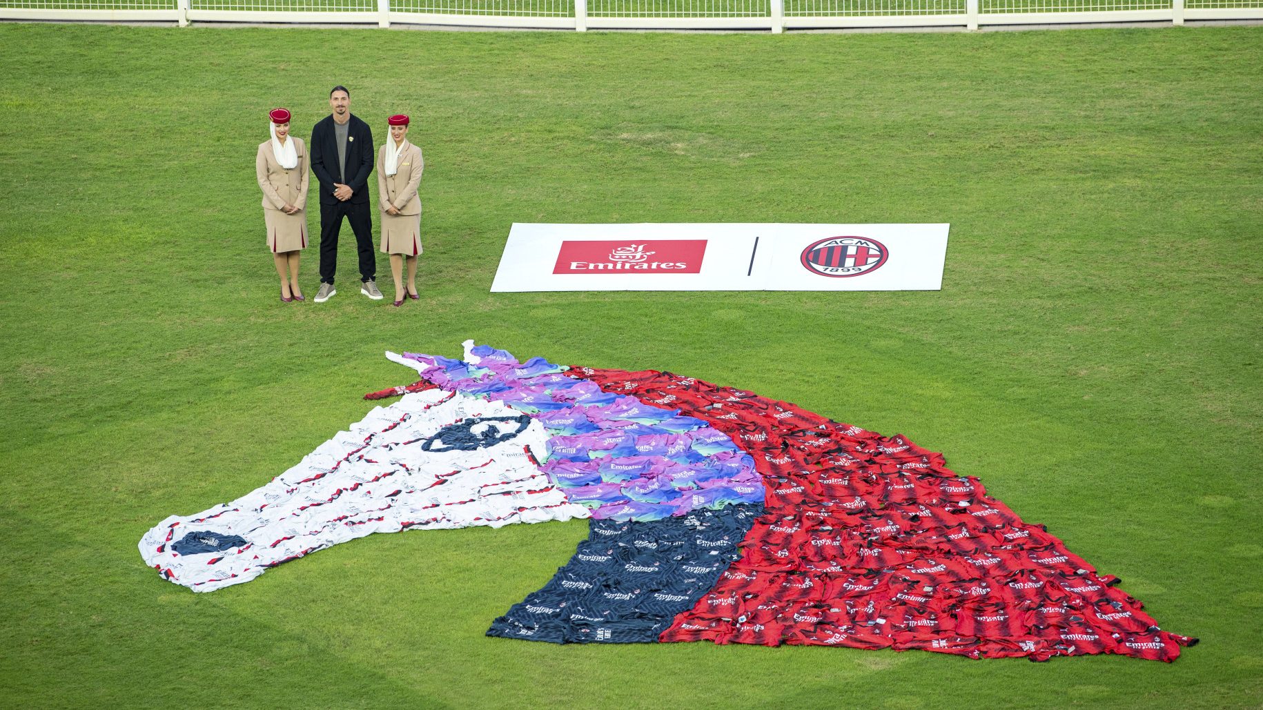 Emirates’ten yapılan açıklamaya göre, kaligraffiti sanatçısı ve tasarımcı, Kareemgraphy olarak bilinen Abdul Kareem, etkinlik AC Milan’ın iç saha, deplasman ve kaleci formalarından bir at enstalasyonu tasarladı.