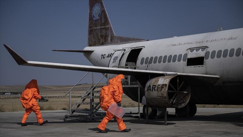 Senaryo gereği AFAD tarafından kurulan dekontaminasyon alanında 10 yolcu ile mürettebattan 3 kişi, kurulan arındırma ünitelerinde dekontamine edildi. DHMİ Sağlık ve UMKE ekipleri dekontamine işlemi yapılan yolcu ve mürettebatın hastanelere sevkini sağladı.