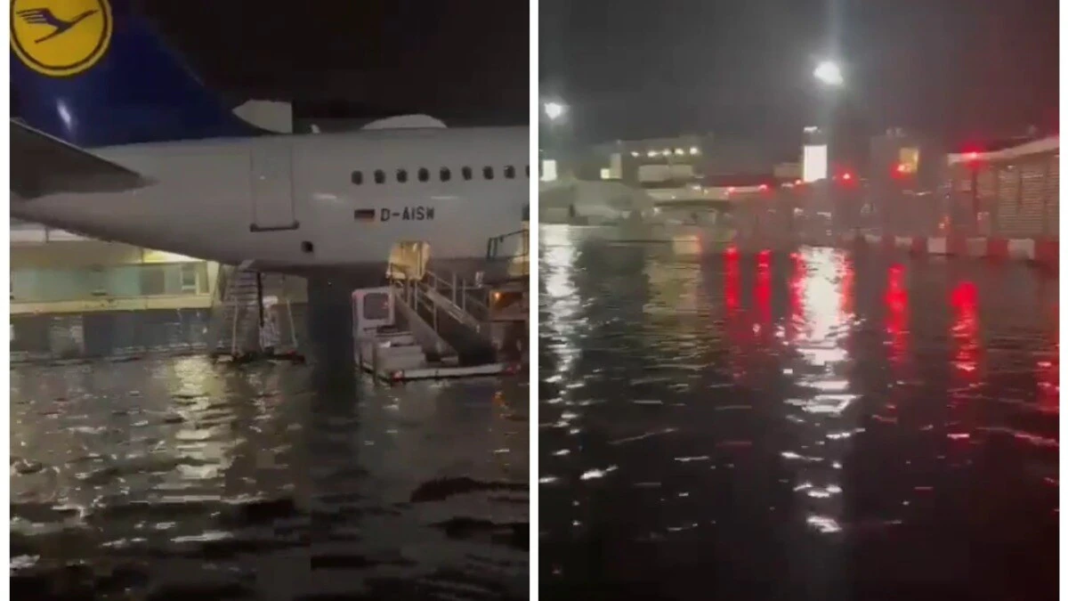 Almanya’nın bazı bölgelerinde etkili olan şiddetli yağış ve fırtına nedeniyle Frankfurt Havalimanı’nı su bastı.