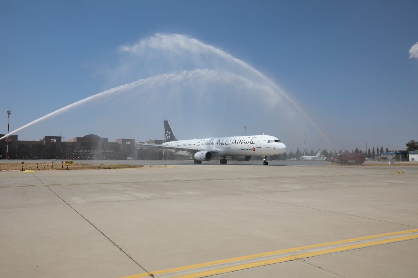 Paris’e direkt uçacak yolcular için Gaziantep Havalimanı’nda itfaiye ekiplerince su takı yapıldı, yolcular çiçeklerle uğurladı. Gaziantep Büyükşehir Belediye Başkan Fatma Şahin, buradaki konuşmasında, salgınla yeni bir dünyanın kurulduğunu belirterek, sürece en hazır şehir olduklarını ifade etti.