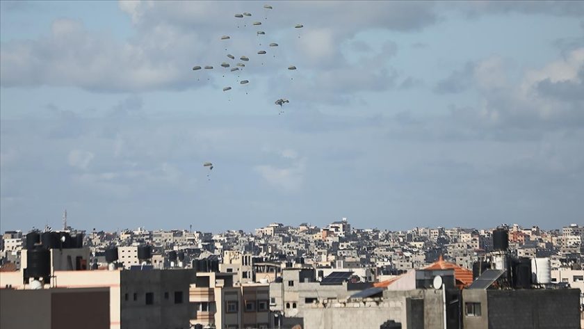 Gazze Şeridi’ne yardım taşıyan uçakların havadan indirdiği insani yardım kutularının paraşütlerinin açılmaması ve bölgede yardım bekleyen Filistinlilerin üzerine düşmesi sonucu 5 kişinin öldüğü, bazı kişilerin yaralandığı bildirildi.