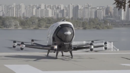 Ulaştırma Bakanlığı ve Seul Belediyesi’nin ortaklaşa yürüttüğü test kapsamında 6 drone taksisi Youido bölgesinde içerisinde insan bulunmadan uçuş yaptı.