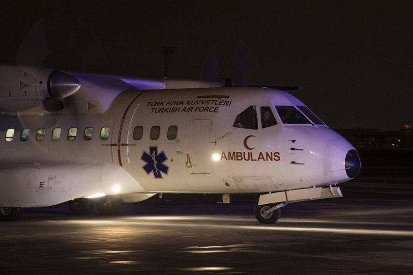 AA muhabirinin edindiği bilgilere göre, Sağlık Bakanlığı bünyesinde 4, 2 ve 1 sedyeli uçak ambulanslar, helikopter ambulanslar, yurt dışı uçakları, TSK kargo tipi uçakları ve Cumhurbaşkanlığına ait ambulans uçaklarla Adıyaman, Gaziantep, Malatya, Kahramanmaraş, Mersin, Adana, Hatay, Şanlıurfa, Diyarbakır ve Kayseri’den yaralılar taşındı.